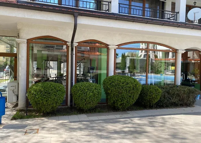 Royal Beach Mall znajduje się jedynie 8 min pieszo od apartamentu, natomiast Klub plażowy Bedroom znajduje się 3 km stąd. Dotarcie do serca Słonecznego Brzegu zajmie Ci 10 min. Plaża Południowa w Nesebyrze jest w około 4 km.
